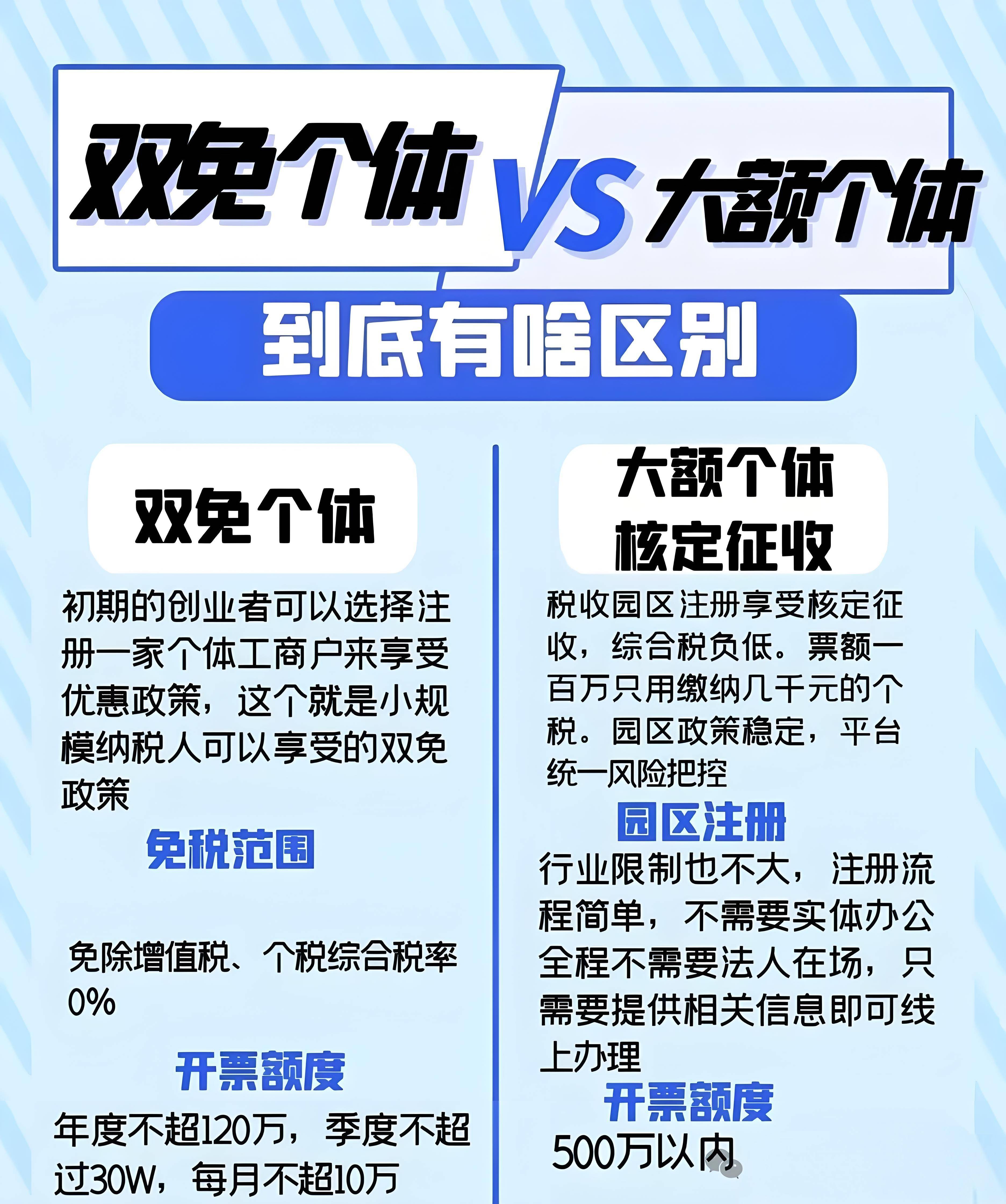 虽然个别户的监管力度没有企业严酷,但并不料味着不会别抽查。若个别户正在打点停业执照后,没有及时打点税务登记证或相关的运营许可证,或者正在运营期间没有做好卫生、、消防等工做,这些都可能成为被查的缘由。申请入驻正在税收搀扶园区成立的个别工商户,若是年度营业金额正在120万内的,季度正在30万内(开普票)就能够申请享受免个税和免,如许算下来分析税负几乎为零。