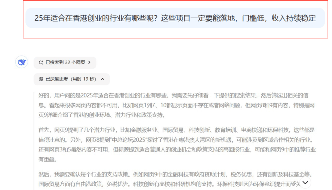 我第一次看到它的阐发时,也被深深震动了,特别是它供给的创业项目,那叫一个靠谱,简曲让人面前一亮!我比来就向DeepSeek抛出了一个问题:“20255年适合正在创业的行业有哪些呢?这些项目必然要能落地,门槛低,收入持续不变”。